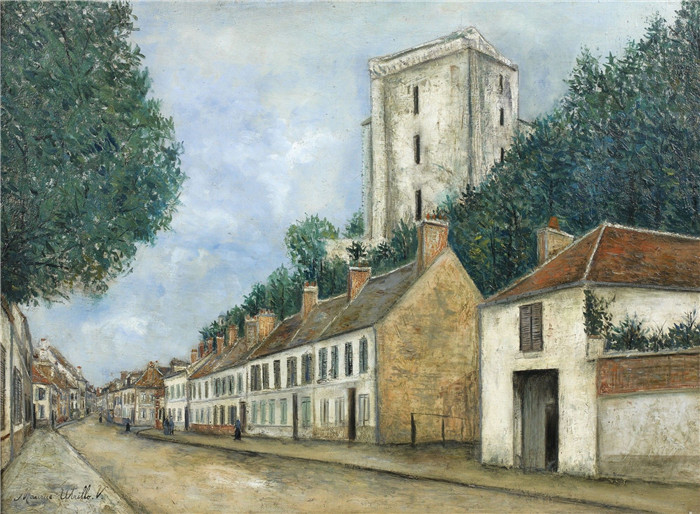 简介: 莫里斯·乌特里略(Maurice Utrillo)的绘画-梅街和城堡,费特·米隆(埃纳)Meaux Street and Castle, The Ferte-Milon (Aisne), 1914