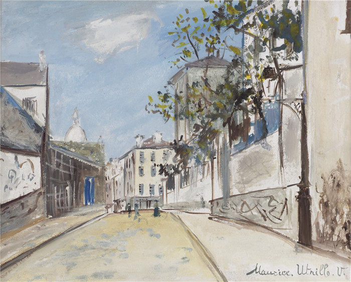 简介: 莫里斯·乌特里略(Maurice Utrillo)的绘画-蒙蒂塞尼街位于蒙马特Mont Cenis Street at Montmartre