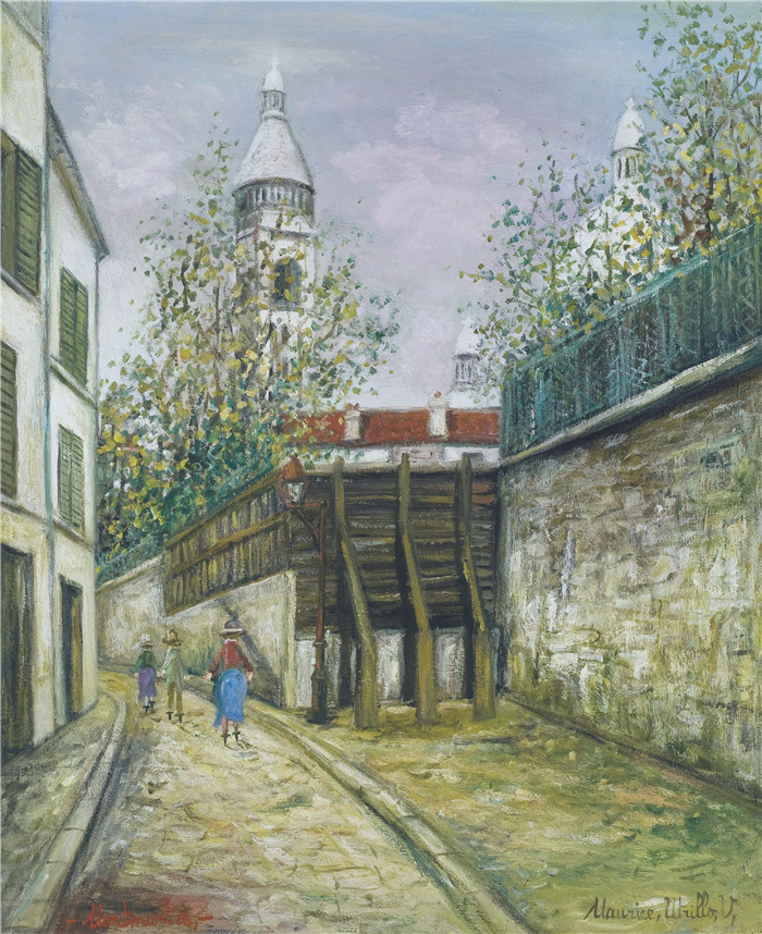 简介: 莫里斯·乌特里略(Maurice Utrillo)的绘画-蒙马特邦纳街Bonne Street at Montmartre, 1934-36