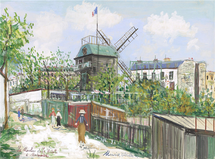 简介: 莫里斯·乌特里略(Maurice Utrillo)的绘画-蒙马特的加莱特磨坊Le Moulin de la Galette at Montmartre, 1930