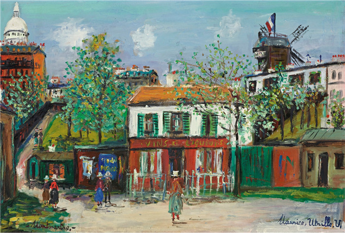 简介: 莫里斯·乌特里略(Maurice Utrillo)的绘画-蒙马特的马奎斯Le Maquis de Montmartre, 1948