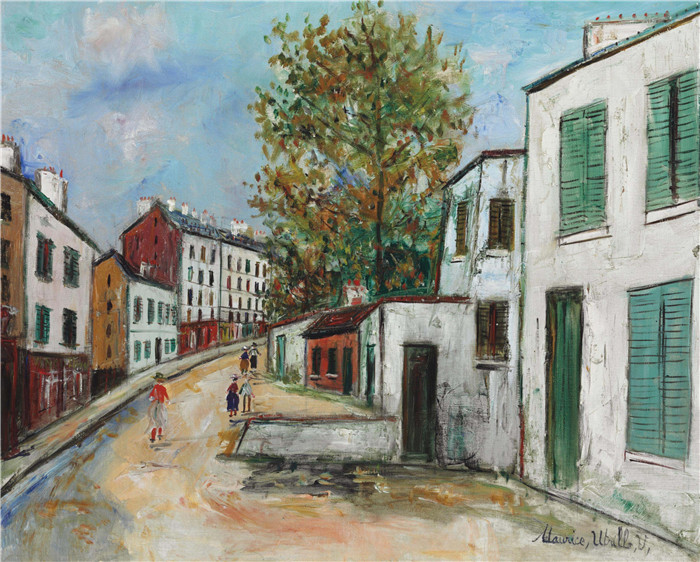 简介: 莫里斯·乌特里略(Maurice Utrillo)的绘画-蒙马特街Rue à Montmartre 1934-35