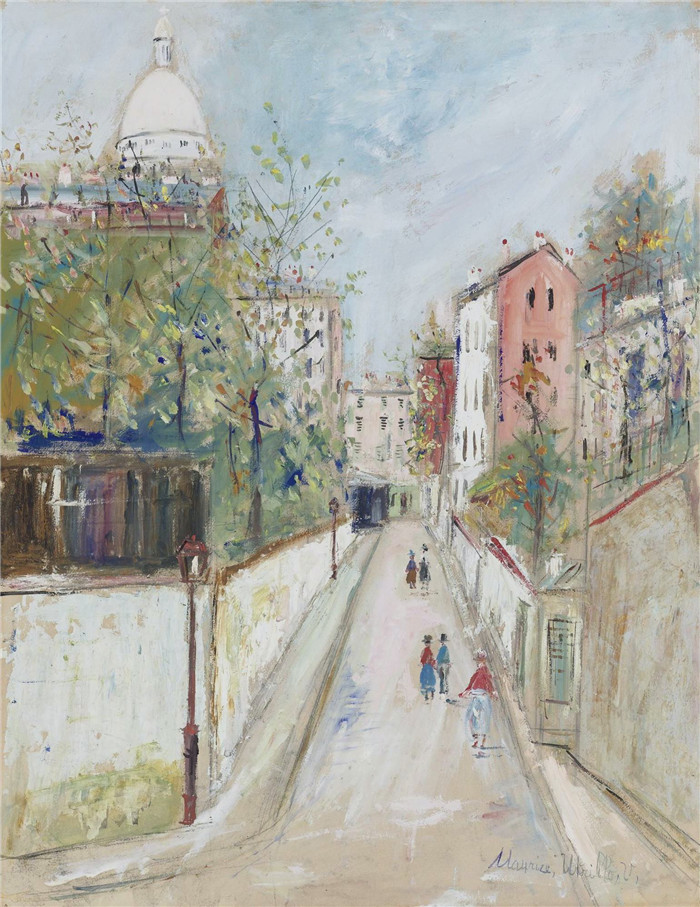 简介: 莫里斯·乌特里略(Maurice Utrillo)的绘画-蒙马特街Street at Montmartre, 1933