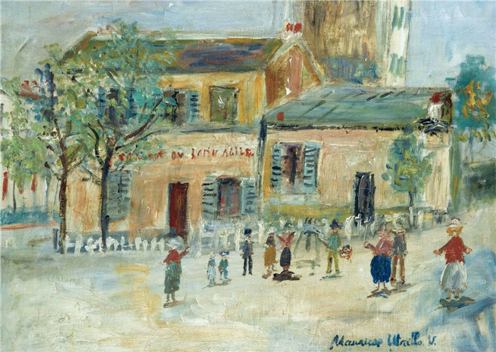 简介: 莫里斯·乌特里略(Maurice Utrillo)的绘画-蒙马特拉平·阿敏捷歌舞表演The Cabaret of Lapin Agile at Montmartre, 1952