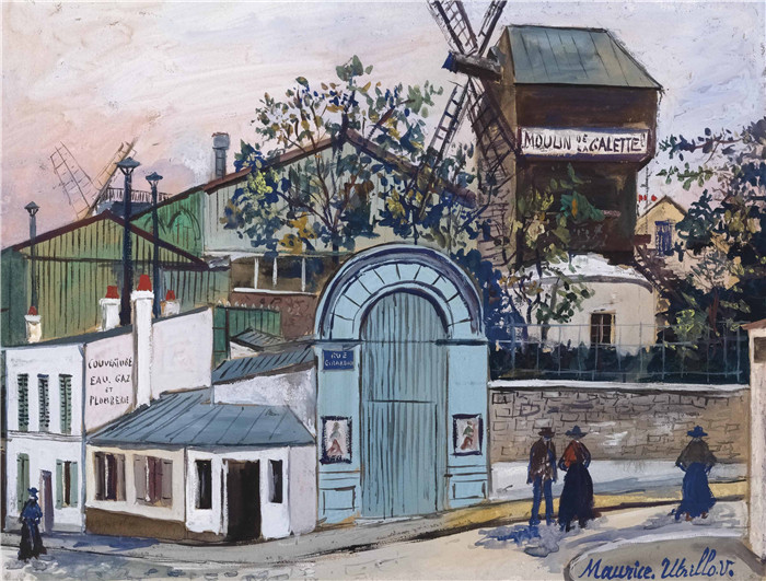 简介: 莫里斯·乌特里略(Maurice Utrillo)的绘画-蒙马特勒皮克街和吉拉登街的十字路口Le Moulin de la Galette, Crossroad of Lepic and Girardon Streets at Montmartre, 1922-24