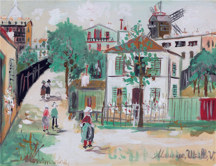 简介: 莫里斯·乌特里略(Maurice Utrillo)的绘画-蒙马特磨坊Le Moulin de la Galette, Montmartre