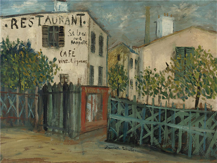 简介: 莫里斯·乌特里略(Maurice Utrillo)的绘画-蒙马特山上的餐馆The Restaurant on the Hill Montmartre, 1914