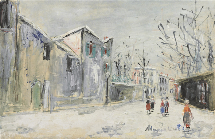 简介: 莫里斯·乌特里略(Maurice Utrillo)的绘画-蒙马特圣文森特街Saint-Vincent Street, Montmartre in Winter