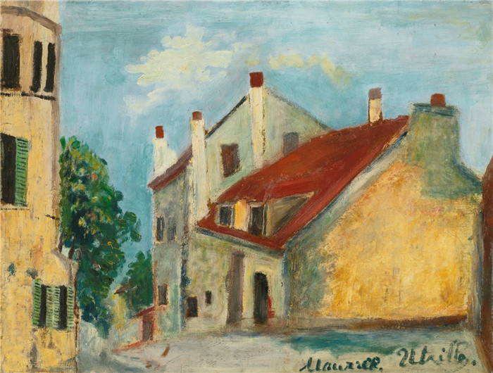 简介: 莫里斯·乌特里略(Maurice Utrillo)的绘画-米米·平森故居,蒙马特The House of Mimi Pinson, Montmartre, 1910-12