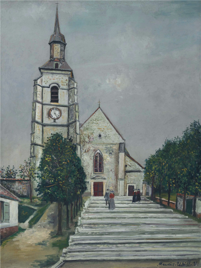 简介: 莫里斯·乌特里略(Maurice Utrillo)的绘画-穆兰教堂(索姆)The Church of Moulins (Somme)