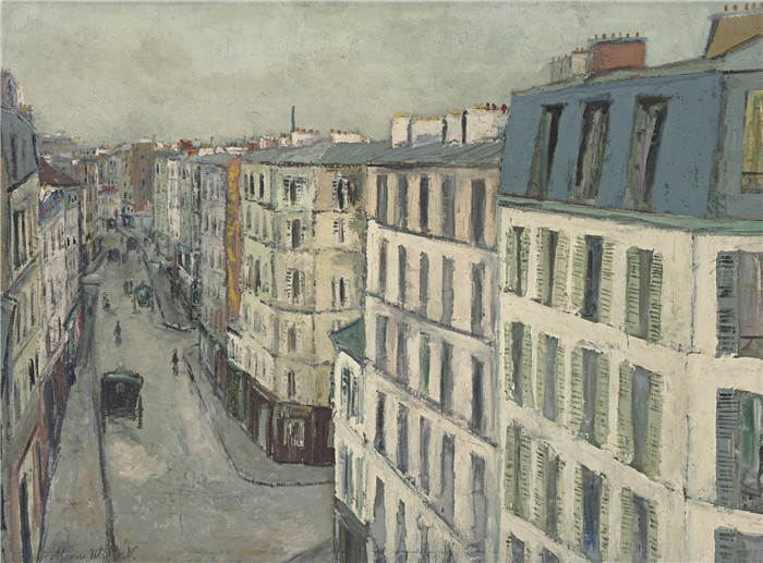 简介: 莫里斯·乌特里略(Maurice Utrillo)的绘画-琼基耶街Jonquiere Street, 1910