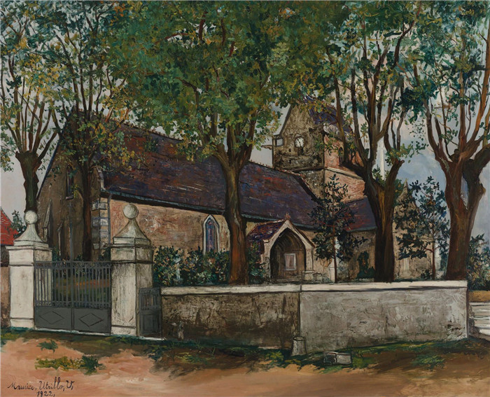 简介: 莫里斯·乌特里略(Maurice Utrillo)的绘画-热涅茨教堂The Church at Genets, 1922