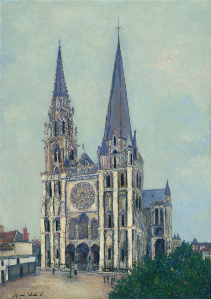 莫里斯·乌特里略(Maurice Utrillo)的绘画-沙特尔大教堂(尤里卢瓦尔)The Cathedral of Chartres (Eure-et-Loire), 1912-14