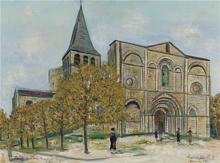 简介: 莫里斯·乌特里略(Maurice Utrillo)的绘画-圣阿曼德·德博伊西教堂The Church of Saint-Amand-de-Boise (Charente), 1935
