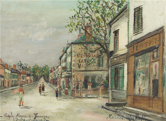 简介: 莫里斯·乌特里略(Maurice Utrillo)的绘画-圣摩尔·德·图莱恩(因德里和卢瓦尔)国家大街Grande rue Nationale à Sainte-Maure-de-Touraine (Indre-et-Loire) 1940