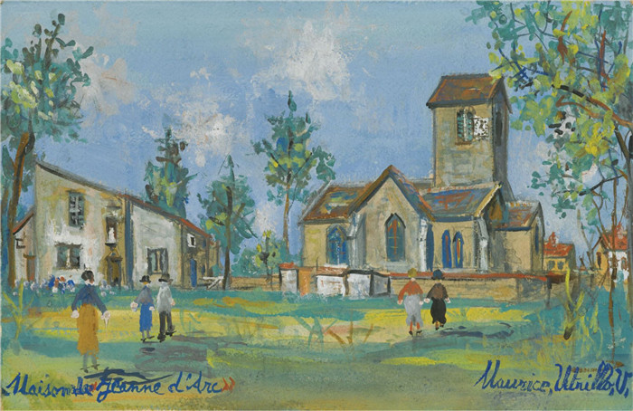 简介: 莫里斯·乌特里略(Maurice Utrillo)的绘画-圣女贞德之家和多姆雷米·拉·普塞莱教堂The House of Jeanne D'Arc and Church Domremy-la-Pucelle (Vosges), 1925-30