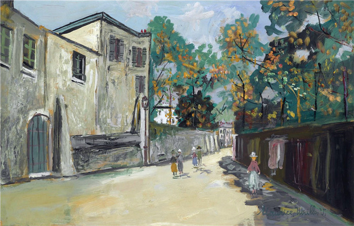 简介: 莫里斯·乌特里略(Maurice Utrillo)的绘画-圣乡村街Saint-Vincent Street, 1939