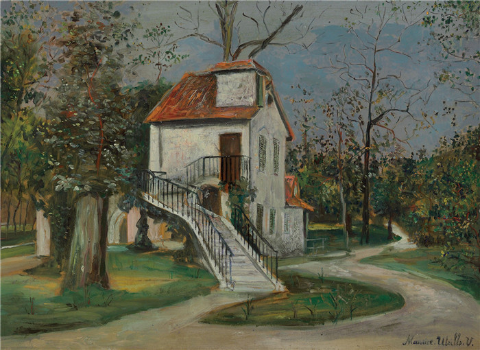 简介: 莫里斯·乌特里略(Maurice Utrillo)的绘画-特里亚农女王磨坊Moulin de la Reine at Trianon, 1919