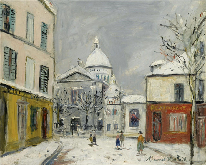 简介: 莫里斯·乌特里略(Maurice Utrillo)的绘画-雪下圣心教堂Sacre-Coeur under the Snow, 1950