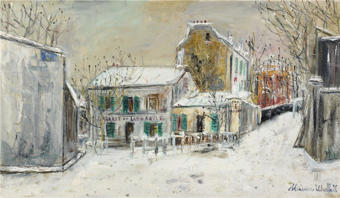 简介: 莫里斯·乌特里略(Maurice Utrillo)的绘画-雪夜拉普安捷歌厅The Cabaret of Lapin Agile under the Snow, 1932
