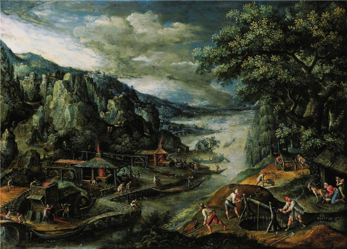 简介: 马滕·范瓦尔克伯格(Marten van Valckenborch)画作-一条河谷中的铁矿开采场景A River Valley with Iron Mining Scenes