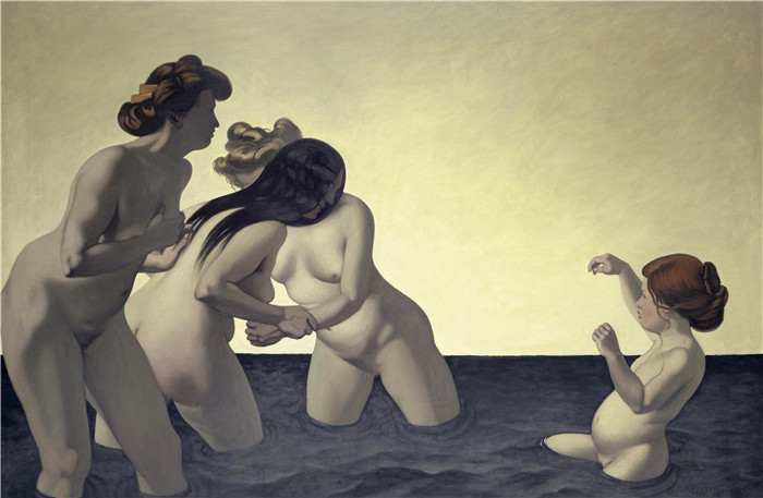 简介: 费利克斯·瓦洛顿(Félix Vallotton)的绘画-三个女人和一个小女孩在水中玩耍Trois femmes et une petite fille jouant dans l'eau, 1907, G 1957.2