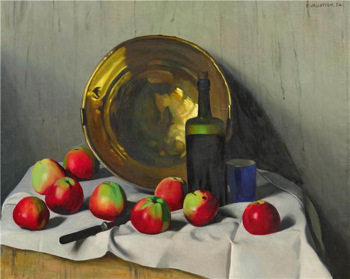 简介: 费利克斯·瓦洛顿(Félix Vallotton)的绘画-铜盆和苹果Bassine de cuivre et pommes 1924