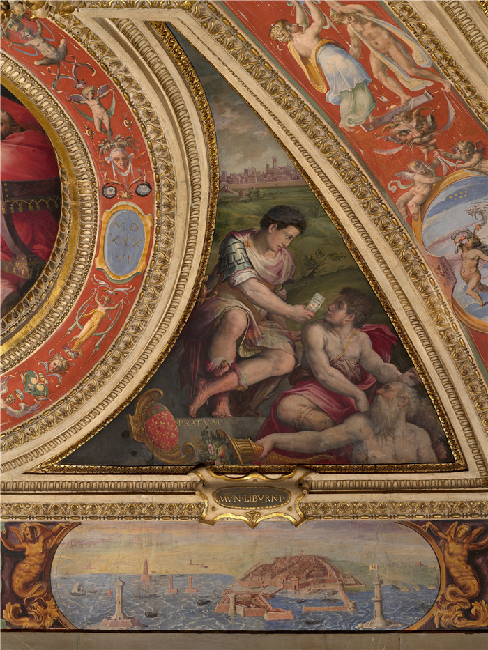 简介: 乔治·瓦萨里(Giorgio Vasari)的画作-普拉托寓言Allegory of Prato; to the bottom, view of Livorno