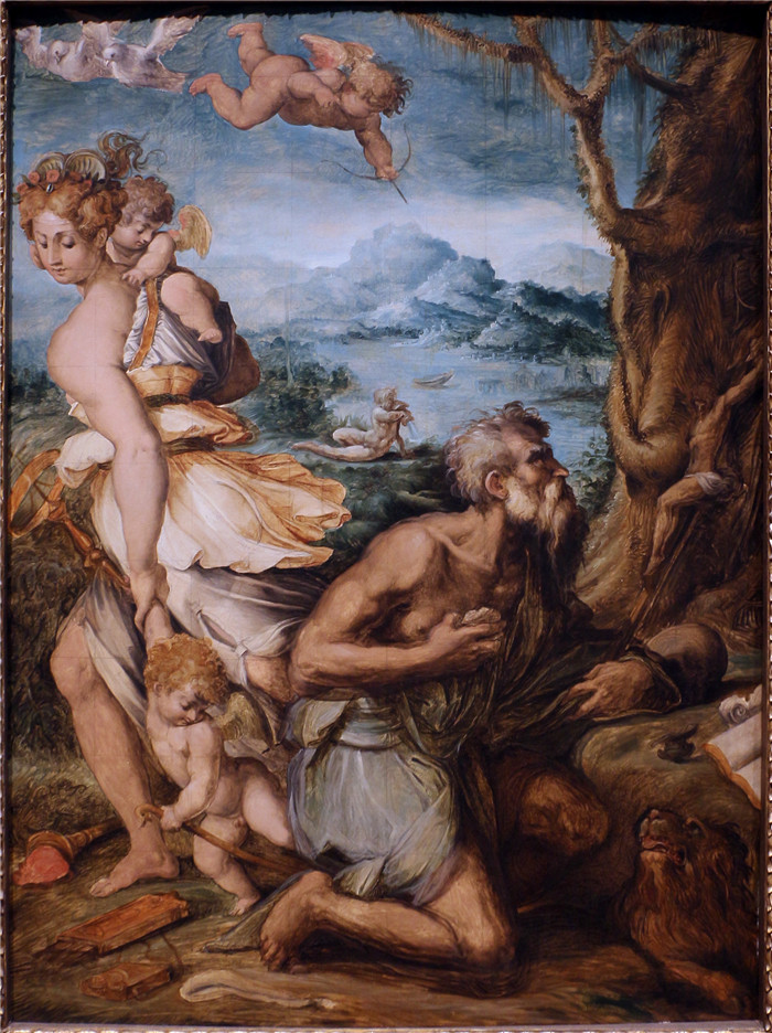简介: 乔治·瓦萨里(Giorgio Vasari)的画作-圣杰罗姆的诱惑tentazione di san girolamo, 1541-48