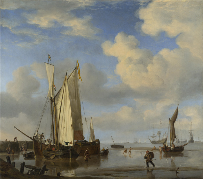 简介: 威廉·范德费尔德二世(Willem van de Velde II)画作-荷兰船只近岸与男子沐浴Dutch Vessels Inshore and Men Bathing