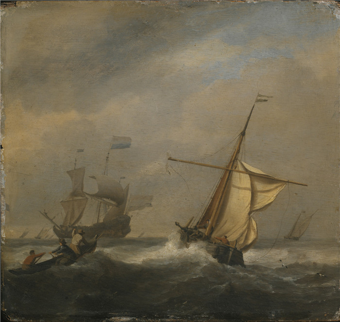简介: 威廉·范德费尔德二世(Willem van de Velde II)画作-加贝中的渔船Fishing Boats in a Gabe (Willem van de Velde d.y.)