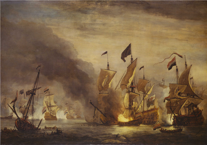 简介: 威廉·范德费尔德二世(Willem van de Velde II)画作-索尔贝战役中皇家詹姆斯号的焚毁The Burning of the Royal James at the Battle of Solebay, 28 May 1672