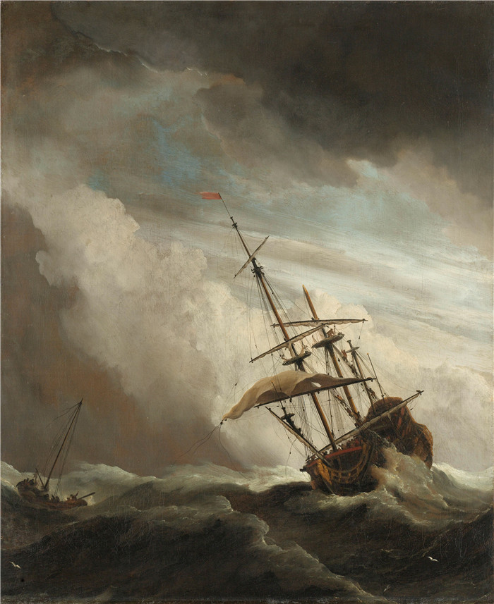简介: 威廉·范德费尔德二世(Willem van de Velde II)画作-一艘船在暴风雨中航行于大海Een schip in volle zee bij vliegende storm, bekend als ‘De windstoot’ Rijksmuseum SK-A-1848
