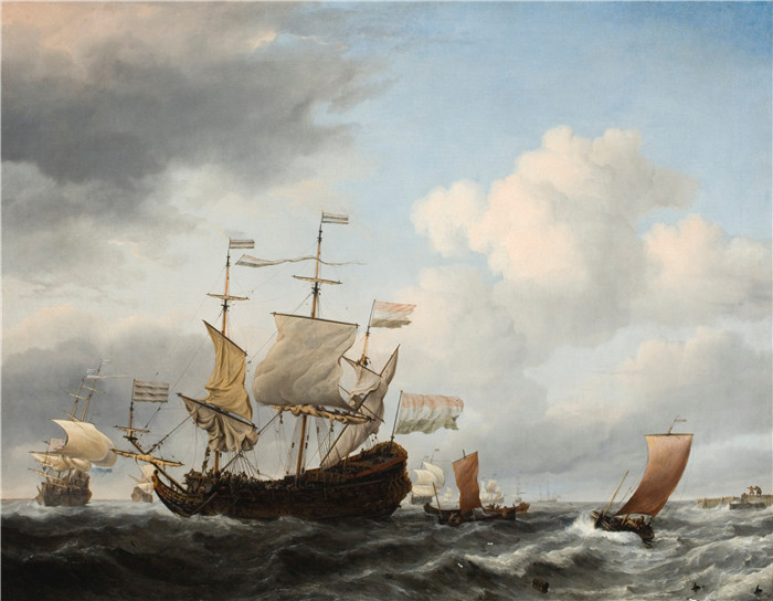 简介: 威廉·范德费尔德二世(Willem van de Velde II)画作-一艘荷兰旗舰即将靠岸A Dutch Flagship Coming to Anchor