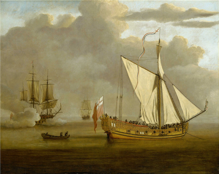 简介: 威廉·范德费尔德二世(Willem van de Velde II)画作-英国游艇“朴次茅斯”号抛锚停泊The English Yacht 'Portsmouth' at Anchor