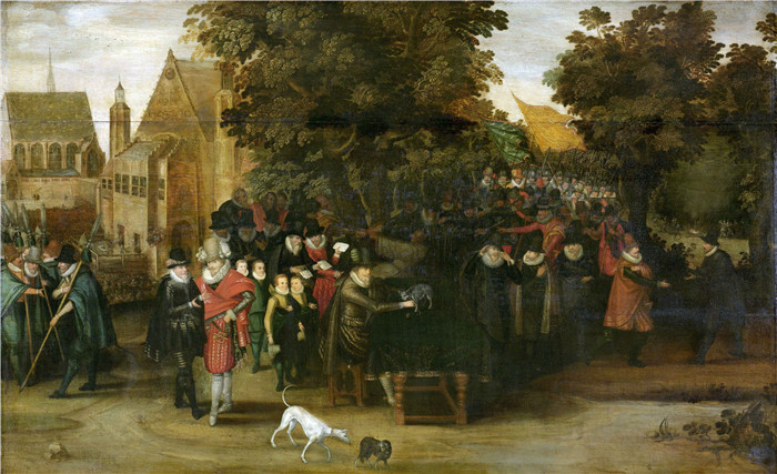简介: 阿德里安·范德文内(Adriaen van de Venne)油画-关于荷兰政治的讽刺剧Satirische voorstelling op de Hollandse politiek omstreeks 1619