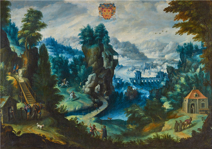 简介: 维尔哈希特(Tobias Verhaecht)油画-河畔狩猎场景Scène de chasse au bord d'une rivière, animée de plusieurs ermitages