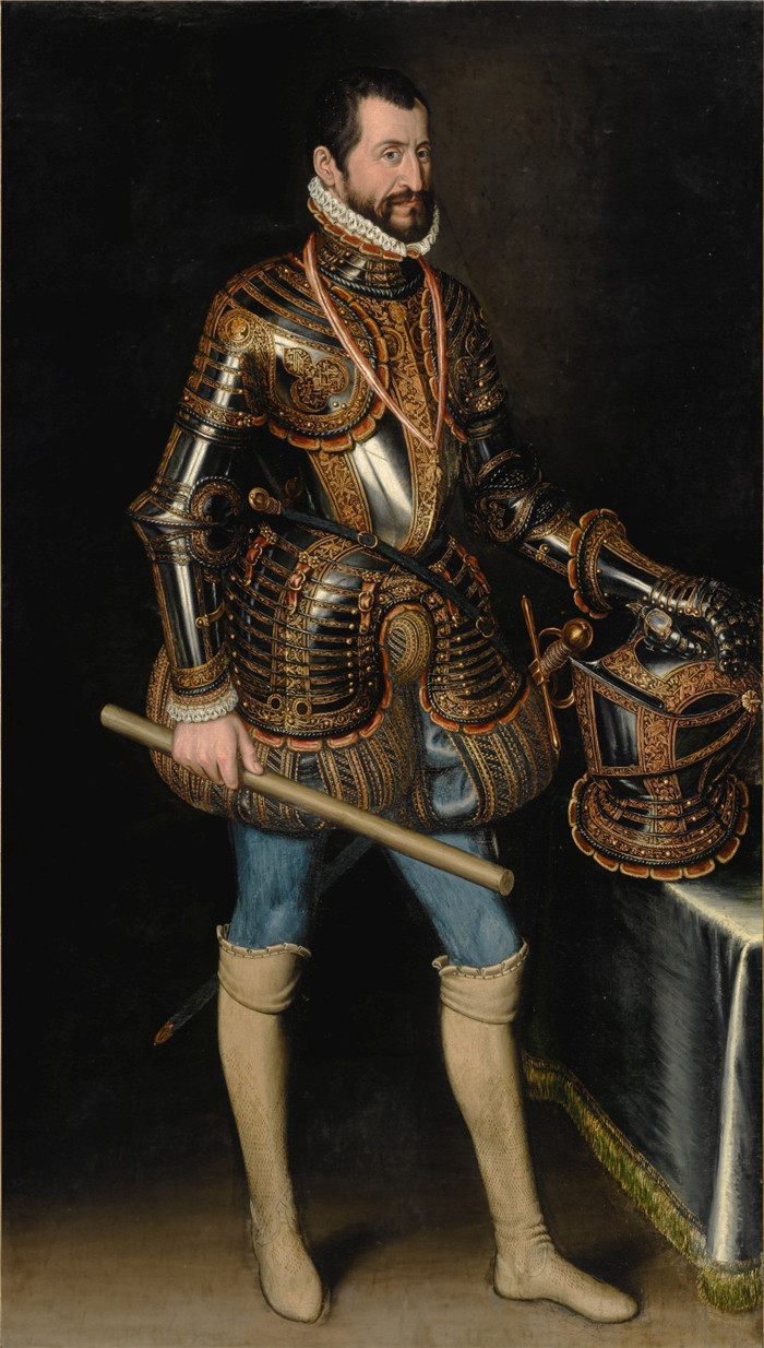 胡安·潘托哈·德拉克鲁斯(Juan Pantoja de la Cruz)绘画-一幅身着盔甲的绅士肖像画Portrait of a gentleman in armor, traditionally said to be Don Fernando Alvarez de Toledo, 3rd Duke of Alba (by Attributed to Juan Pantoja de l