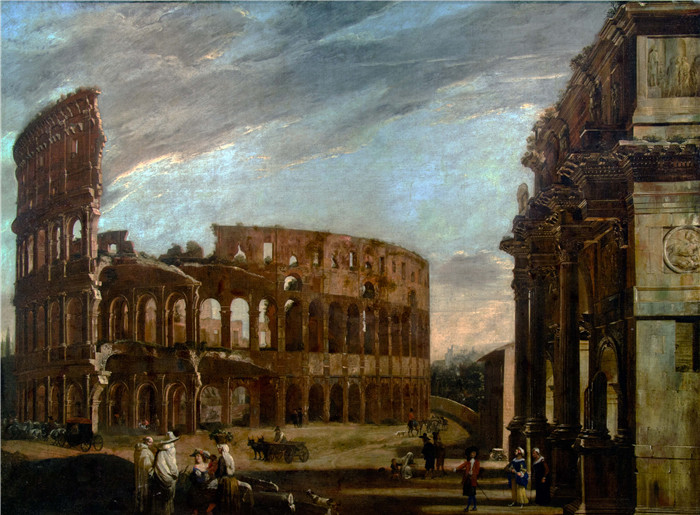 简介: 米开朗基罗·切尔科齐(Michelangelo Cerquozzi)作品-罗马斗兽场和君士坦丁拱门Colosseum and Arch of Constantine