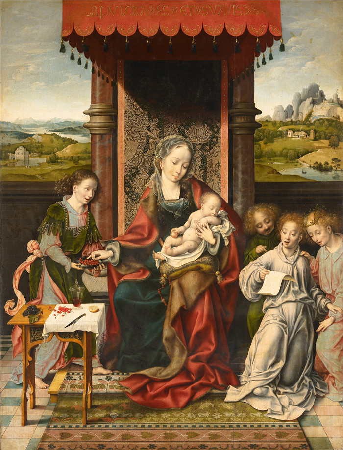 简介: 乔斯·范·克莱夫(Joos van Cleve)作品-圣母与圣子与天使 Virgin and Child with Angels