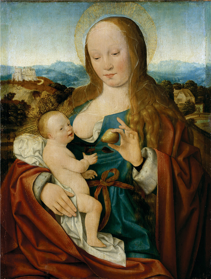 简介: 乔斯·范·克莱夫(Joos van Cleve)作品-圣母与子持梨Madonna en kind met een peer