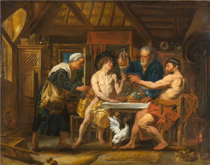 简介: 雅各布·乔丹斯(Jacob Jordaens)作品-腓利门与包西斯之家中的朱庇特与墨丘利 Jupiter and Mercury in the House of Philemon and Baucis