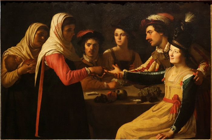 简介: 格里特·范·霍恩霍斯特(Gerrit van Honthorst)画作-夜晚,好运相伴Gherardo delle notti, la buona ventura, 1617-19 ca., in cornice del 1690