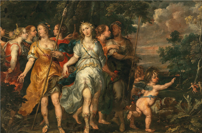 简介: 扬·托马斯(Jan Thomas van Ieperen)画作-戴安娜与她的宁芙们Jan Thomas Diana und ihre Nymphen