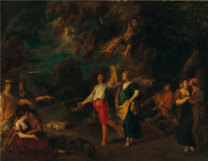 简介: 扬·托马斯(Jan Thomas van Ieperen)画作-林间优雅舞者与狂欢者Jan Thomas van Yperen Elegant figures dancing and carousing in a wooded landscape