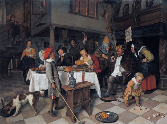 简介: 扬·斯汀(Jan Steen)高清作品-第十二夜盛宴A Twelfth Night Feast - ‘The King drinks’, by Jan Steen