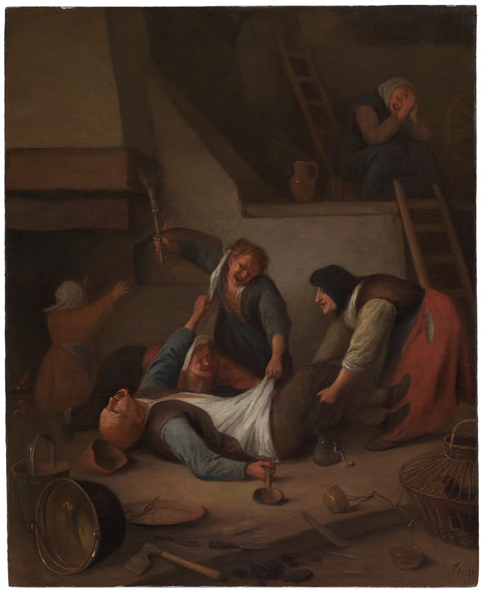 简介: 扬·斯汀(Jan Steen)高清作品-妇女们殴打一名男子(“农民打斗”) Interior with Women Thrashing a Man (“Peasants Fighting”) - JS-103 - Leiden Collection