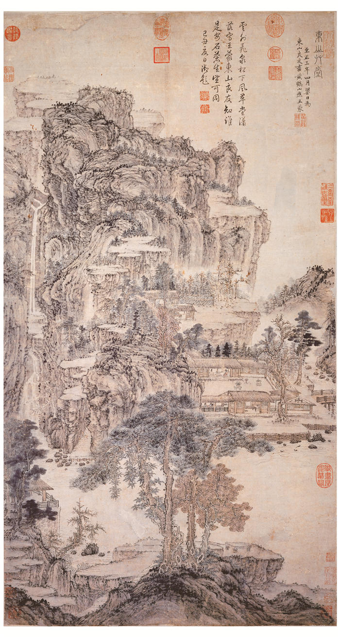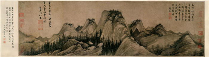 简介: 山水画在魏晋、南北朝已逐渐发展,但仍附属于人物画,作为背景的居多;隋唐始独立,如展子虔的设色山水,李思训的金碧山水,王维的水墨山水,王洽的泼墨山水等;五代、北宋山水画大兴,作者纷起,如荆浩、关仝、李成、董源、巨然、范宽、许道宁、燕文贵、宋迪、王诜、米芾、米友仁的水墨山水,王希孟、赵伯驹、赵伯骕的青绿山水,南北竞辉,达到高峰。从此成为中国画中的一大画科。 |