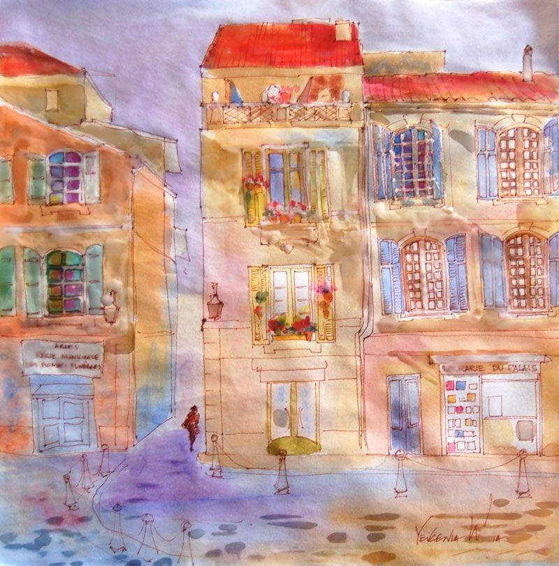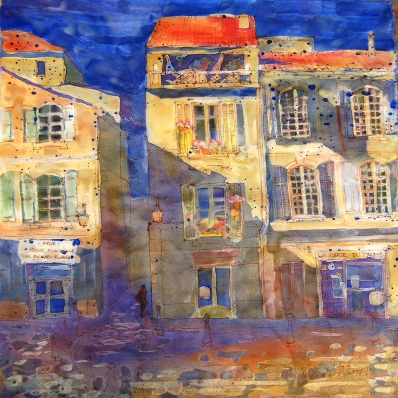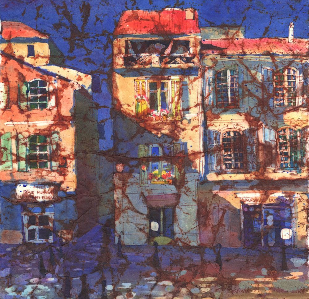 “落地窗。“12 x12“水彩蜡染在宣纸上。点击图片购买打印或原始绘画。