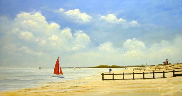 一些 航行小艇现在补充说,其中一个在海滩上添加一些色彩和兴趣在中间距离。更多的细节和纹理添加到groynes。这幅画是现在准备焦点放置,你会注意到立竿见影的效果增加一个五颜六色的小艇在前台,看到图片